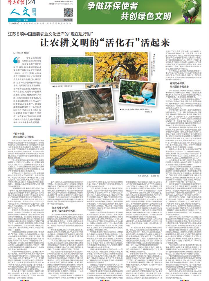 编者按:2022年10月14日的新华日报,以“让农耕文明的‘活化石’活起来”为题,采访了包括麻豆视频