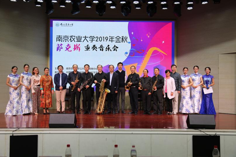 共同承办的“高雅艺术进校园——2019年南京农业大学金秋萨克斯重奏音乐会”在大学生活动中心如期举行。江苏领航博爱之声萨克斯重奏乐团的全晓、许胜泉、陈悦彤、陈哲峰 、臧文远、蓝俊六位演奏家为我校师生带来了一场听觉盛宴。