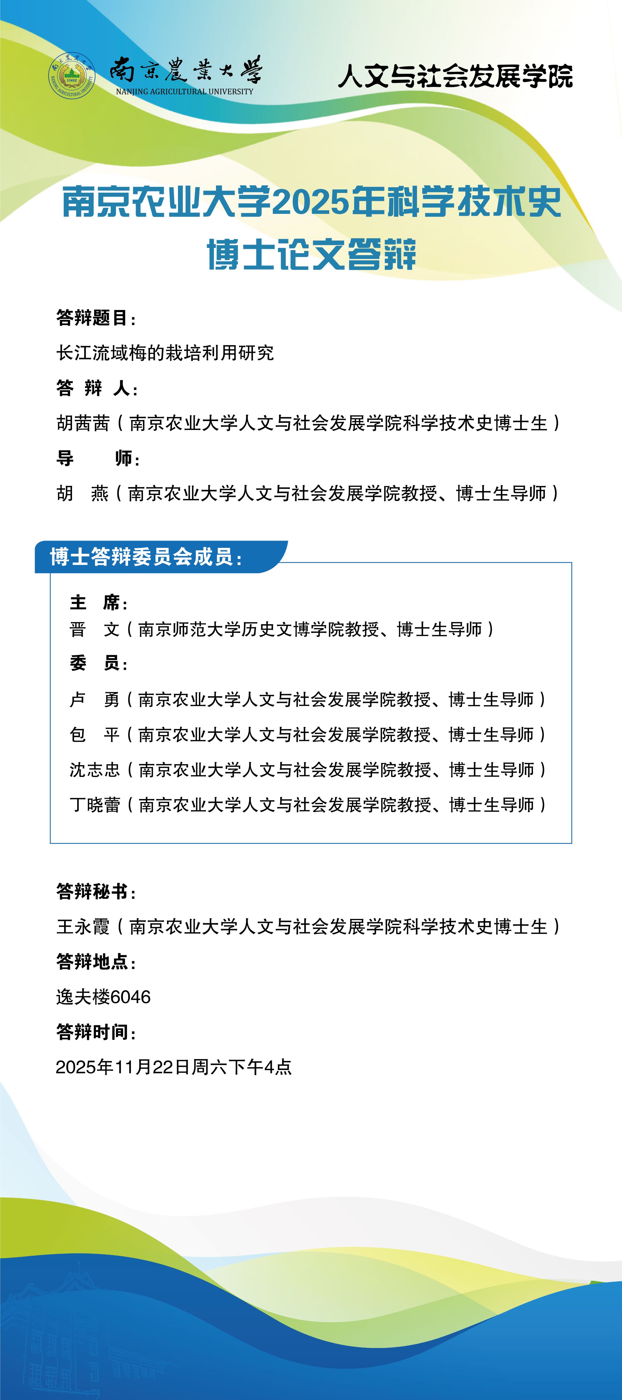南京农业大学2025年科学技术史博土论文答辩