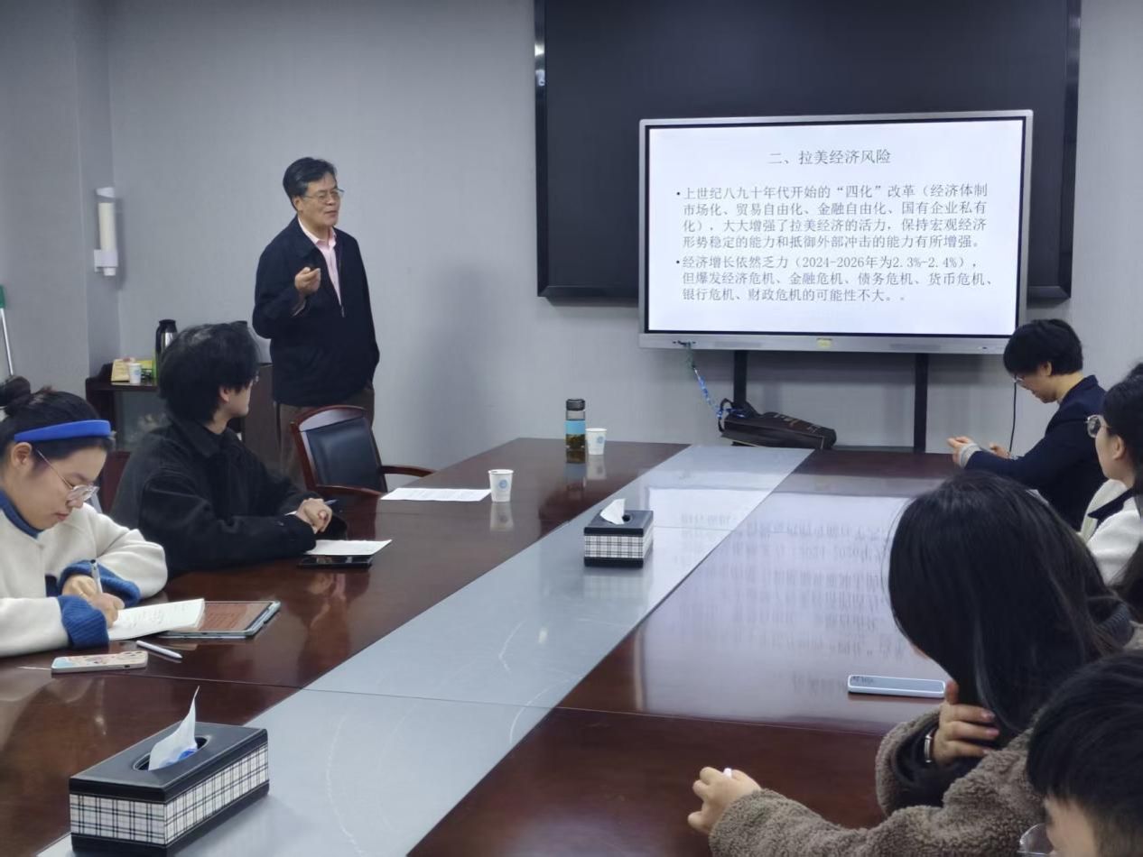 讲座中,江时学系统梳理了拉美地区的宏观经济形势、政策环境及产业发展现状,重点分析了该地区在能源、基础设施、农业和科技等领域的投资潜力。他指出,在当前全球经济格局深度调整的背景下,拉美地区作为新兴市场的重要组成部分,正成为国际资本关注的重点区域,同时,他结合中拉合作的历史脉络与现实需求,从风险防控、本地化经营、可持续发展等角度,为我国企业参与拉美市场建设提出了具体建议。
